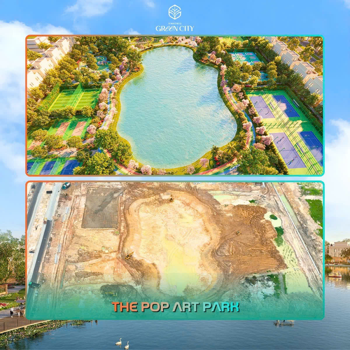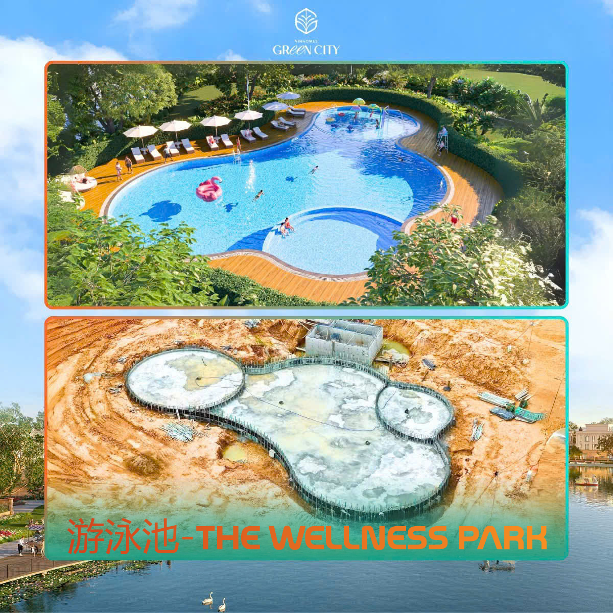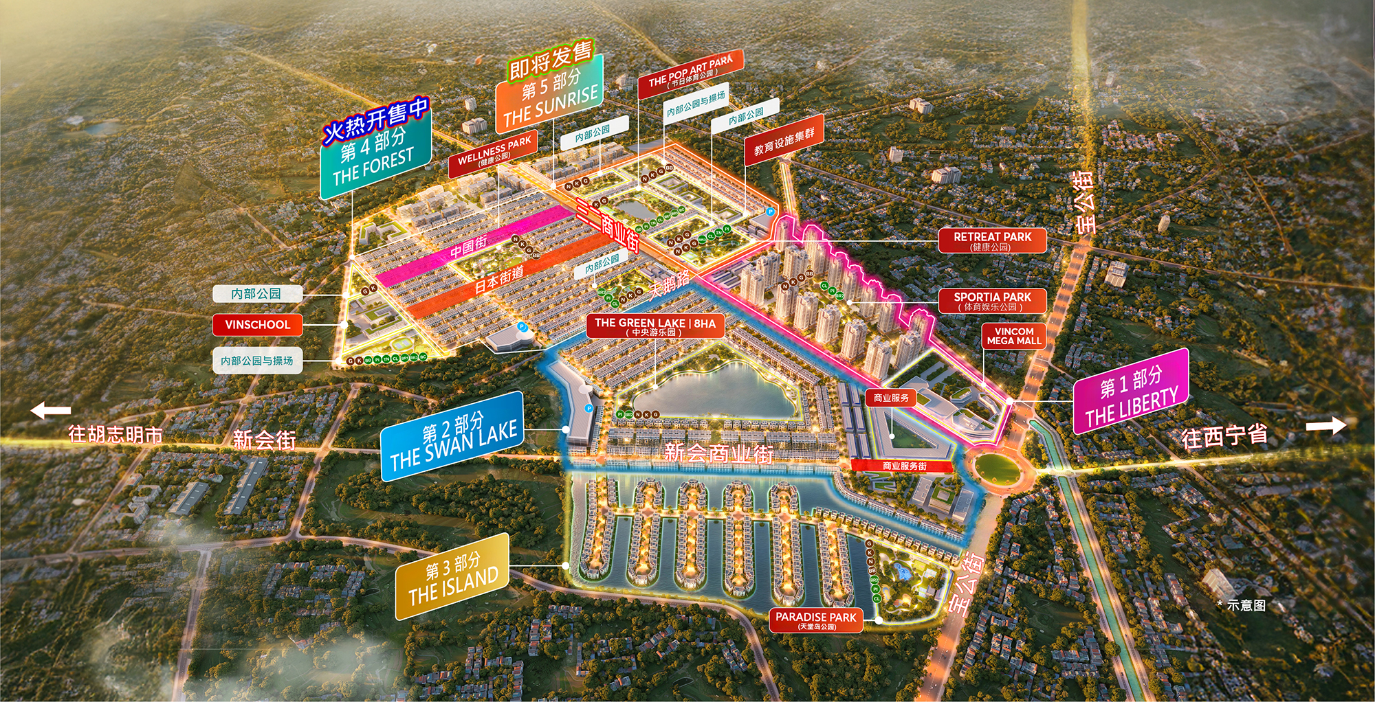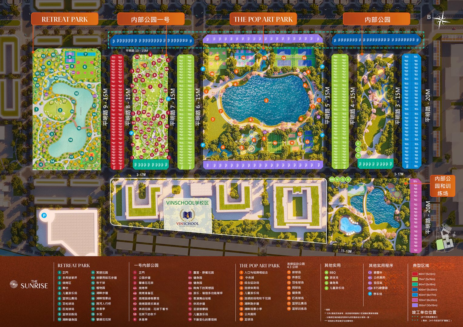 - The Forest 与 The Sunrise 分区正在进行地基施工及景观湖建设
